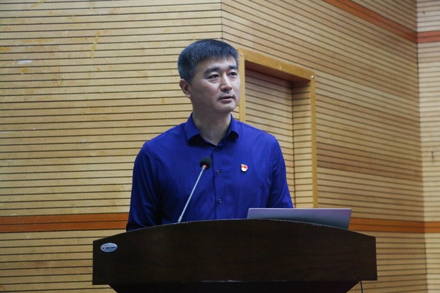 党总支书记陈江江代表党政领导对全体新生表示欢迎,结合半军事化管理要求阐明了军训的意义,叮嘱同学们要发扬吃苦耐劳的精神,听从指挥,服从命令,并祝愿全体新生能够度过有意义的大学时光。