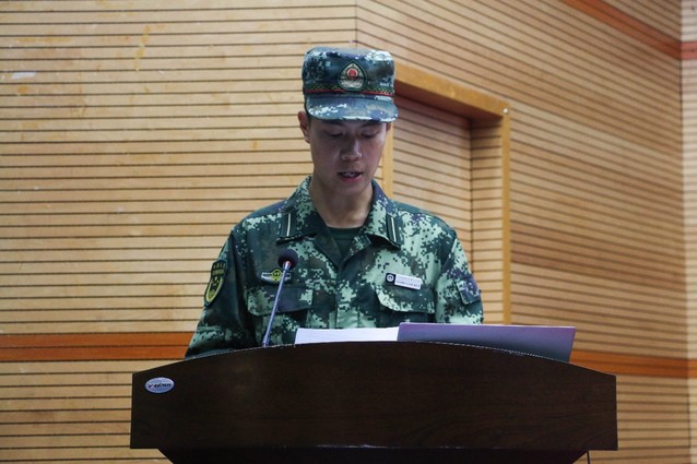 会上,军训教官代表顾志洋在发言中说明了本次军训的目标任务,表达了对圆满完成本次军训任务的决心,表示全体教官会在关心爱护同学的基础之上,高标准严要求,让新生得到充分的锻炼,能够更好迎接未来的挑战。