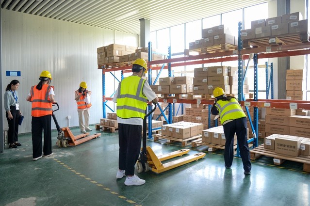 比赛分两个阶段,第一阶段是预赛,采取超星学习通线上答题的方式进行物流基础知识测评,主要考察参赛选手理论方面的水平。第二阶段是决赛,根据给定的第三方物流企业背景资料,设计配送中心补货作业方案,然后在模拟物流作业环境中,选择设备和工具实施补货方案,主要考察参赛选手的动手实操能力。