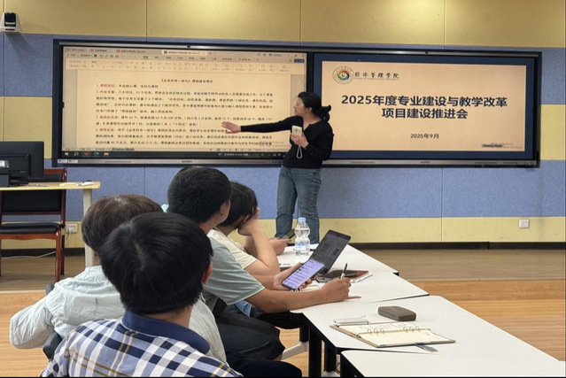 李淼首先介绍了学院专业建设与教学改革项目的整体情况,提出各项目在建设质量、建设进度以及建设资金使用绩效等方面仍存在较大提升空间。随后,各项目负责人围绕项目阶段性建设成效、待解决困难以及下阶段建设重点进行汇报。