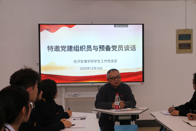 会后,经济管理学院关工委常务副主任徐安喜作为特邀党建组织员对12位预备党员进行了集体谈话。徐安喜首先祝贺同学们成为中共预备党员,他希望同学们以“自信、自强、自律”的标准要求自己,努力做到坚定理想信念,筑牢自信之基;坚持艰苦奋斗,砥砺自强之志;严守纪律规矩,绷紧自律之弦。他勉励大家在实践中继续磨砺和丰富自己,发挥先锋模范作用。
